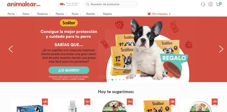 En Animalear.com encontrarás precios low cost y el envío te sale gratis si gastas al menos 39 €, envían pedidos únicamente a España.